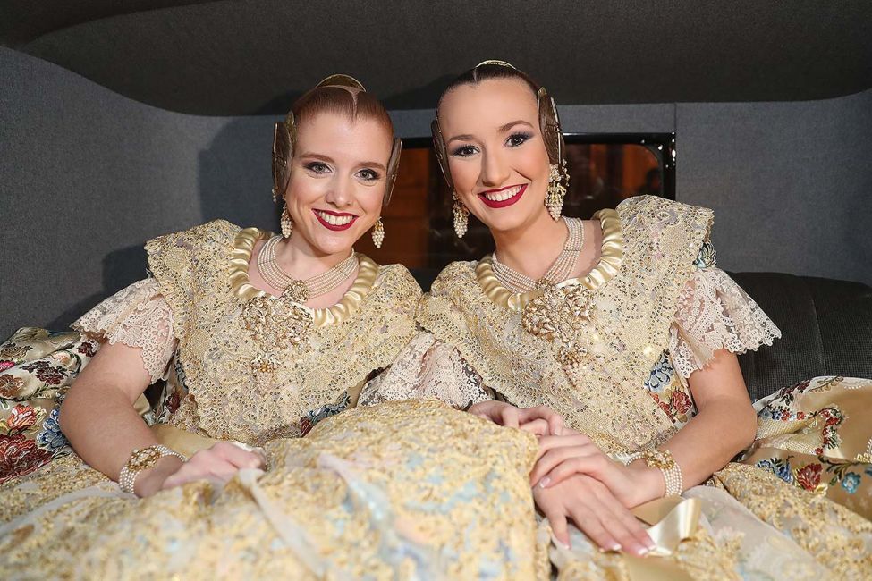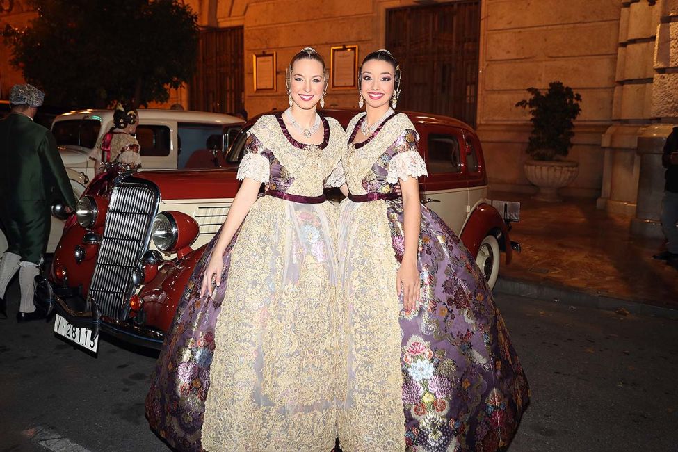 Posteriorment, Marina s’ha dirigit a l’Ajuntament de València on, Pere Fuset, President de Junta Central Fallera, i Rosángeles Valls, la seua mantenedora, l’esperaven per partir cap al Palau de la Música en un Rolls Royce Phantom III de l’any 1937. No obstant això, han sigut les dotze dones de la seua Cort d’Honor les que han arribat abans, per parelles, també en cotxes d’època.